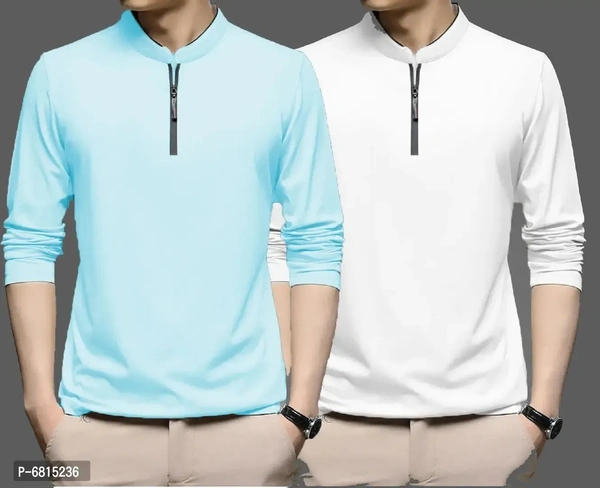 High Neck Men Full Sleev Tshirt Lycra Fabric Sky Blue, White